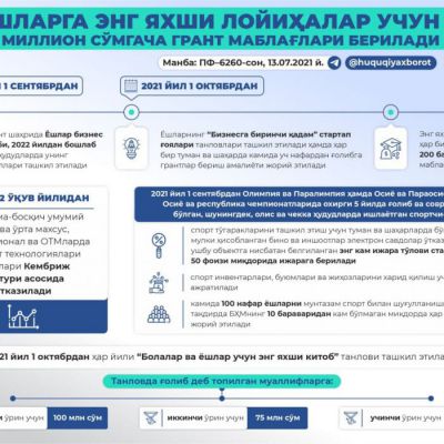 2021-08-20 “Темир дафтар”га киритилган оилаларнинг давлат ОТМларида ўқиётган фарзандларига биринчи ўқув йили учун тўлов-контракти тўлаб берилади